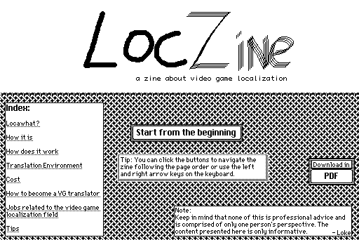 I'm a full-time translator in the video game industry, but it's very common to see people, be it players or developers, a bit lost about the localization process. I sometimes write about localization on my blog, but decided to have some fun this time around and make a quick informative zine in Decker.